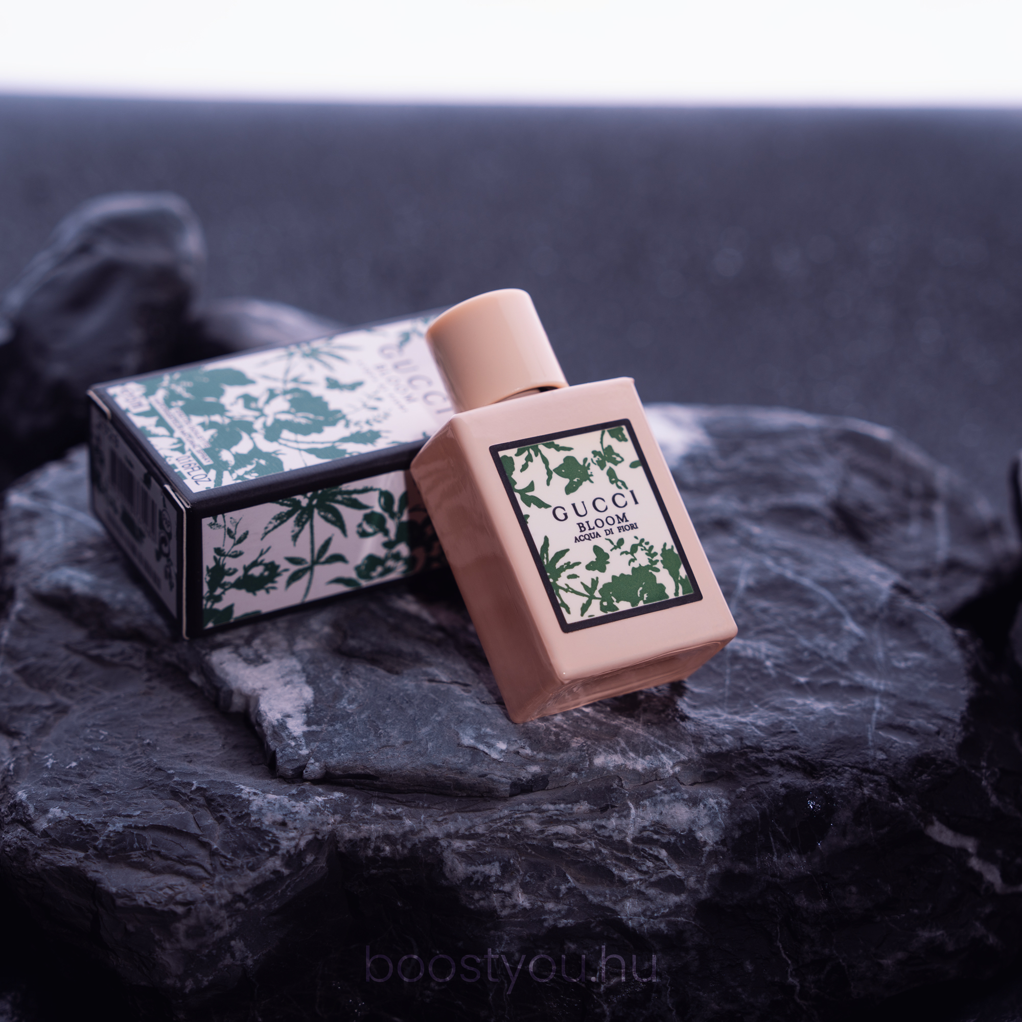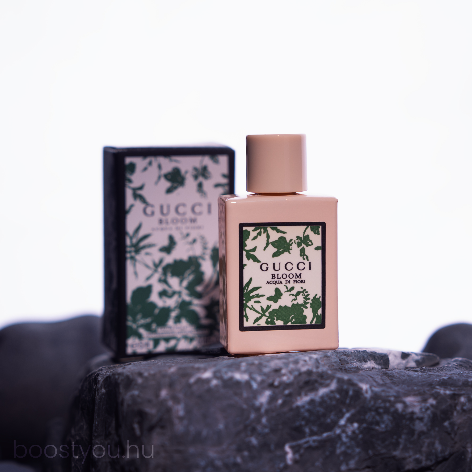 A Gucci Bloom Acqua di Fiori a Bloom kollekció legfrissebb, legzöldebb, legüdébb darabja: egy harmatos, reggeli virágoskert érzetét adó, könnyed, fiatalos Eau de Toilette. Az illat fő karakterét a galbanum zöldessége és a feketeribizli rügy frissessége határozza meg, amelyre a Bloom-vonal ikonikus fehér virágai épülnek.