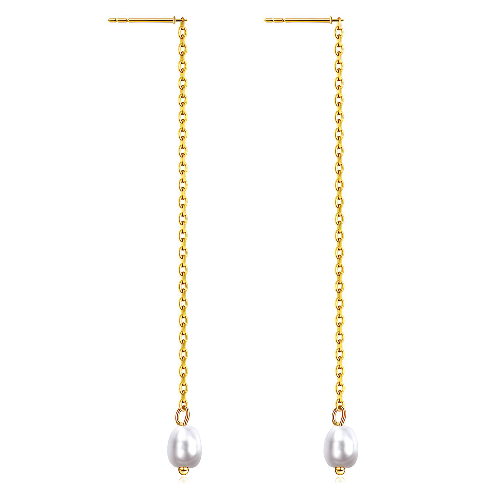 Ez a „PEARL” aranyozott láncos gyöngy fülbevaló a letisztult elegancia tökéletes megtestesítője. A hosszú, finoman csillogó arany lánc végén egy gyönyörű gyöngy függ, amely lágy, nőies megjelenést kölcsönöz a darabnak. Könnyed, légies hatása miatt gyönyörűen megnyújtja a nyak vonalát, és bármilyen alkalmi vagy hétköznapi szettel harmonizál.